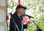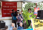 Auf der Kundgebung vor der Demo am alten Bahnhof in Welzow