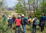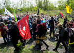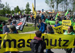 Die Demo auf dem Weg zum Tagebau, Begrüßung der Aktivisten und Blick in die Grube